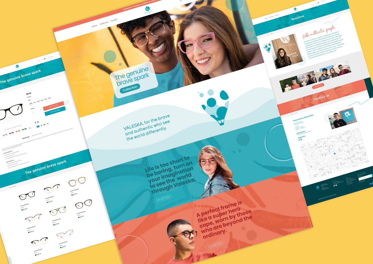 Para el lanzamiento de la marca Valeska, diseñamos una tienda virtual fresca con colores vibrantes y de espíritu joven.